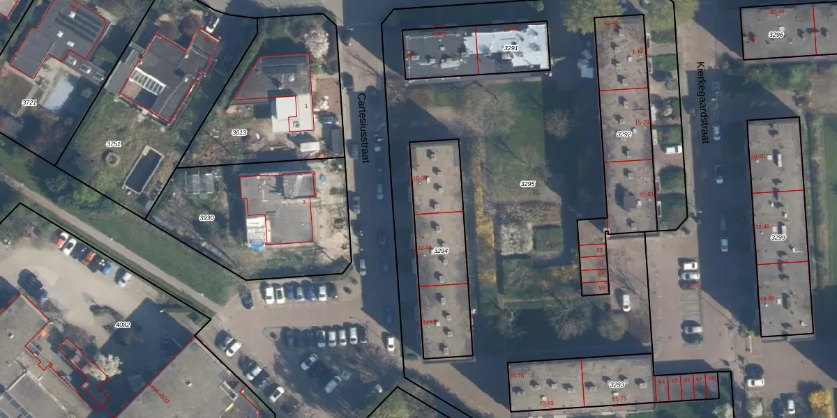 Het perceel waarop Cartesiusstraat 30 staat heeft een oppervlakte van 613 m². Dit is een groot perceel. De perceeloppervlakte wordt geregistreerd door het Kadaster. Gedetailleerde informatie over de maten van dit perceel kunt u vinden in het rapport Kadastrale kaart met maatvoering van Cartesiusstraat 30.