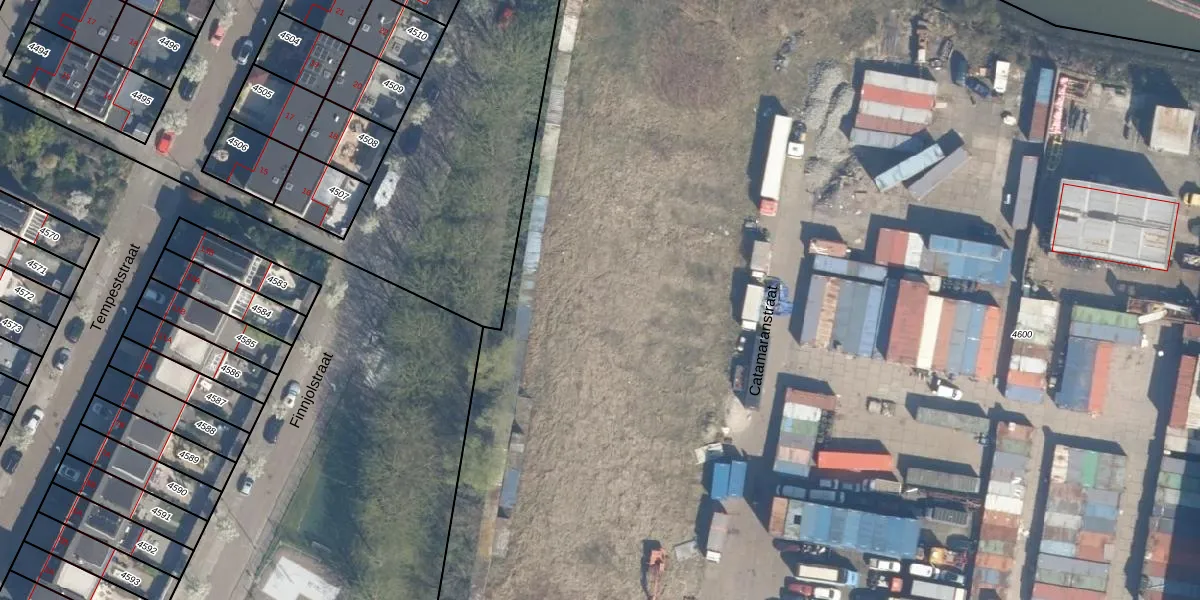 Het perceel waarop Catamaranstraat 151 staat heeft een oppervlakte van 1,8 ha. Dit is een zeer groot perceel. De perceeloppervlakte wordt geregistreerd door het Kadaster. Gedetailleerde informatie over de maten van dit perceel kunt u vinden in het rapport Kadastrale kaart met maatvoering van Catamaranstraat 151.
