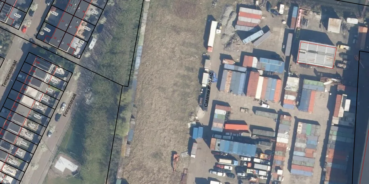 Het perceel waarop Catamaranstraat 289 staat heeft een oppervlakte van 1,8 ha. Dit is een zeer groot perceel. De perceeloppervlakte wordt geregistreerd door het Kadaster. Gedetailleerde informatie over de maten van dit perceel kunt u vinden in het rapport Kadastrale kaart met maatvoering van Catamaranstraat 289.
