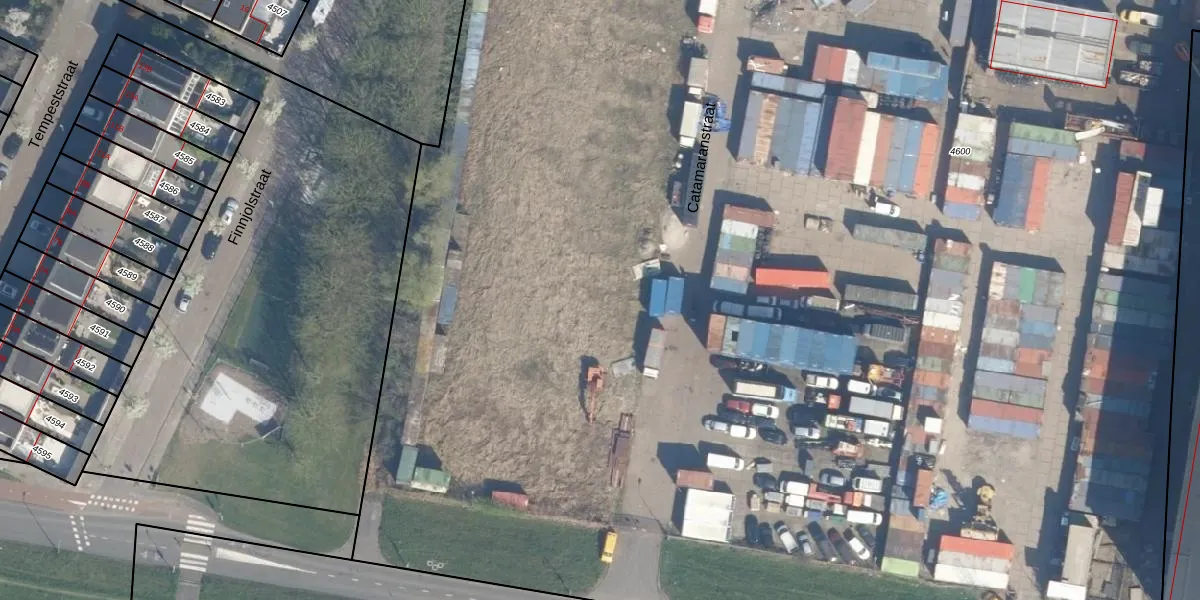 Het perceel waarop Catamaranstraat 35 staat heeft een oppervlakte van 1,8 ha. Dit is een zeer groot perceel. De perceeloppervlakte wordt geregistreerd door het Kadaster. Gedetailleerde informatie over de maten van dit perceel kunt u vinden in het rapport Kadastrale kaart met maatvoering van Catamaranstraat 35.