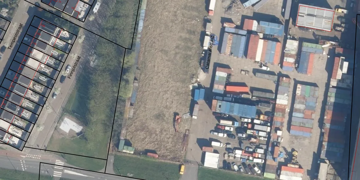 Het perceel waarop Catamaranstraat 37 staat heeft een oppervlakte van 1,8 ha. Dit is een zeer groot perceel. De perceeloppervlakte wordt geregistreerd door het Kadaster. Gedetailleerde informatie over de maten van dit perceel kunt u vinden in het rapport Kadastrale kaart met maatvoering van Catamaranstraat 37.