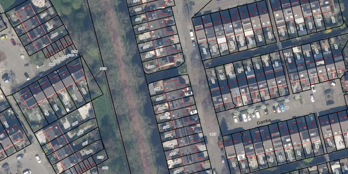 Gebruik de zoekbalk of klik op een perceel voor informatie over de adressen binnen dit perceel.
