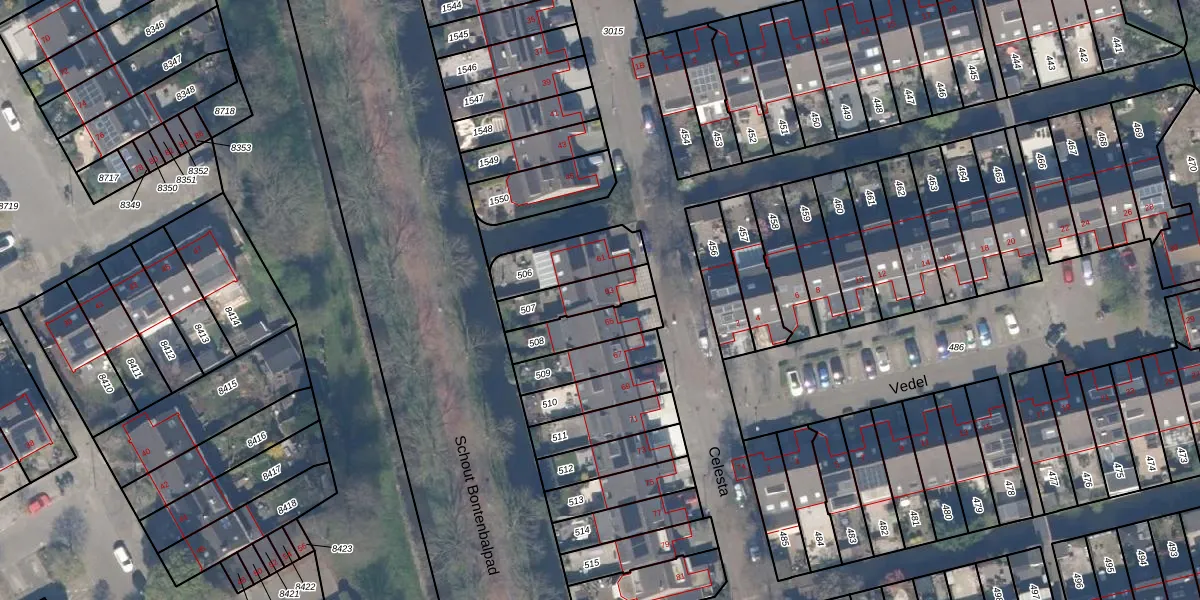 Het perceel waarop Celesta 63 staat heeft een oppervlakte van 140 m². Dit is een middelgroot perceel. De perceeloppervlakte wordt geregistreerd door het Kadaster. Gedetailleerde informatie over de maten van dit perceel kunt u vinden in het rapport Kadastrale kaart met maatvoering van Celesta 63.