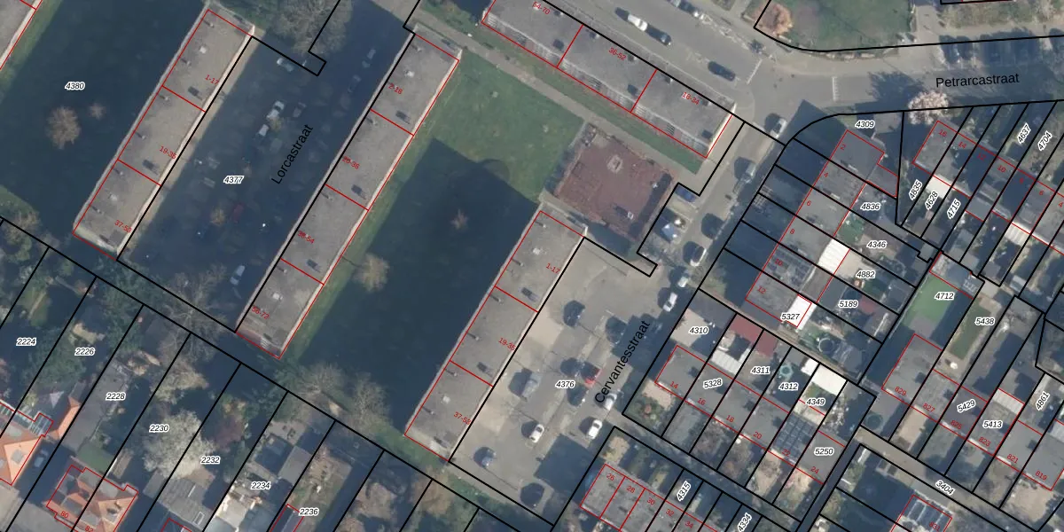 Het perceel waarop Cervantesstraat 15 staat heeft een oppervlakte van 1,9 ha. Dit is een zeer groot perceel. De perceeloppervlakte wordt geregistreerd door het Kadaster. Gedetailleerde informatie over de maten van dit perceel kunt u vinden in het rapport Kadastrale kaart met maatvoering van Cervantesstraat 15.