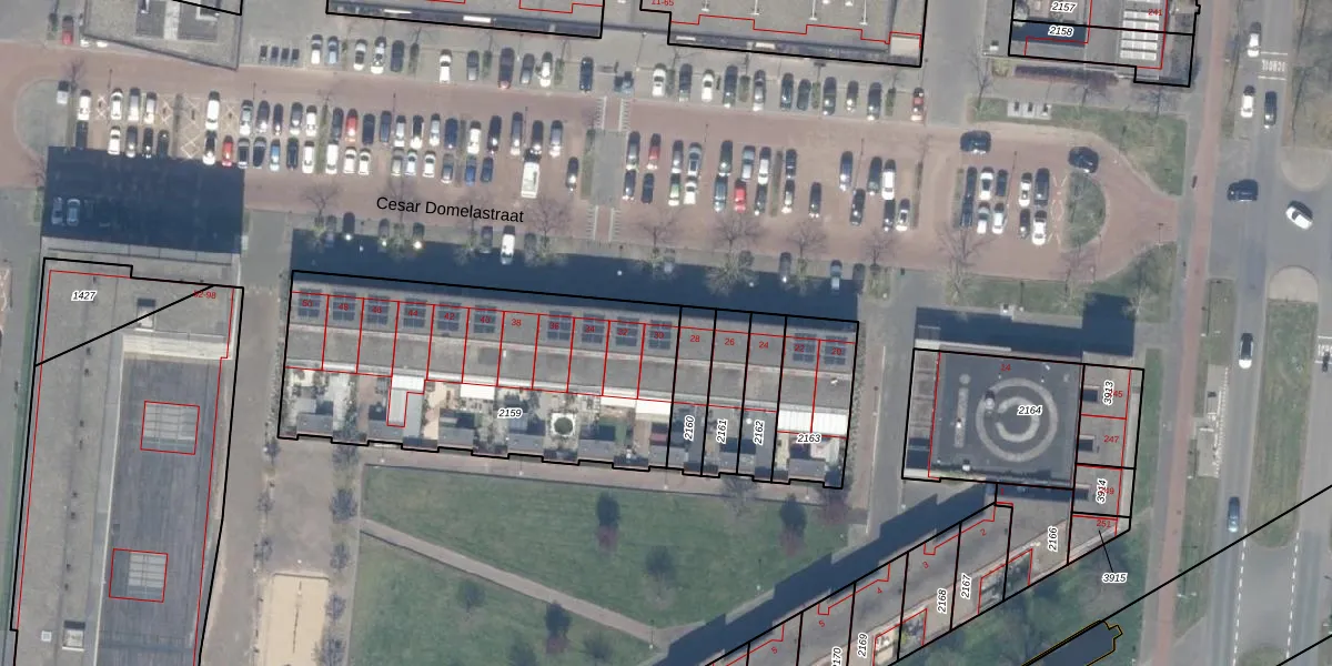 Cesar Domelastraat 30 is gelegen op kadastraal perceel RTD14BC2159. Deze kadastrale aanduiding is uniek en wordt gebruikt door het Kadaster om eigendomsrechten en andere zakelijke rechten vast te leggen. Het perceel maakt onderdeel uit van de kadastrale gemeente Rotterdam.