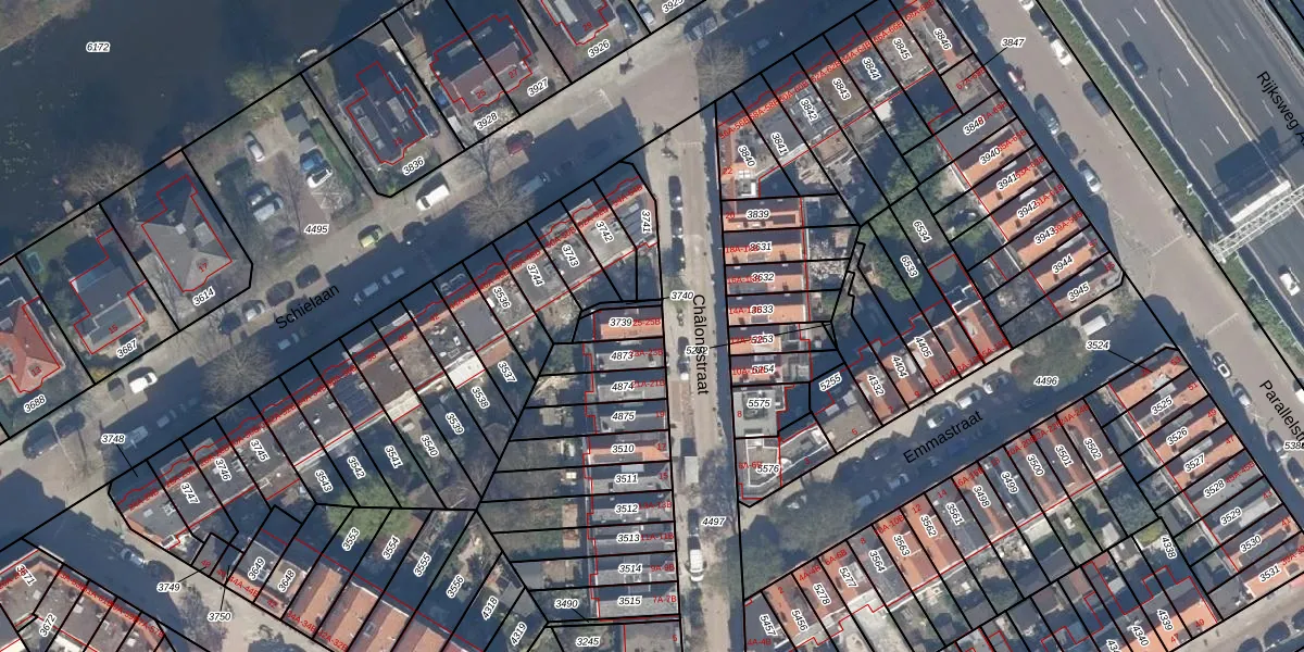 Het perceel waarop Châlonsstraat 25-B staat heeft een oppervlakte van 63 m². Dit is een klein perceel. De perceeloppervlakte wordt geregistreerd door het Kadaster. Gedetailleerde informatie over de maten van dit perceel kunt u vinden in het rapport Kadastrale kaart met maatvoering van Châlonsstraat 25-B.