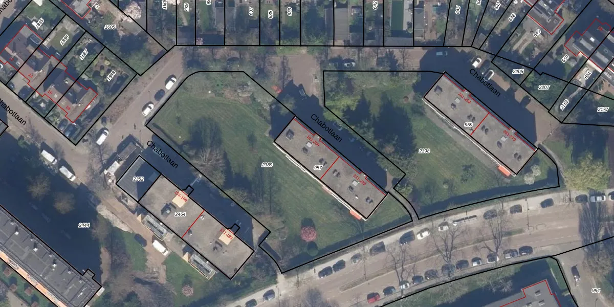 Chabotlaan 201 is gelegen op kadastraal perceel HLG03D957. Deze kadastrale aanduiding is uniek en wordt gebruikt door het Kadaster om eigendomsrechten en andere zakelijke rechten vast te leggen. Het perceel maakt onderdeel uit van de kadastrale gemeente Hillegersberg.