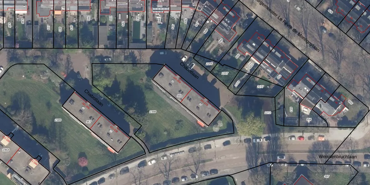 Chabotlaan 259 is gelegen op kadastraal perceel HLG03D959. Deze kadastrale aanduiding is uniek en wordt gebruikt door het Kadaster om eigendomsrechten en andere zakelijke rechten vast te leggen. Het perceel maakt onderdeel uit van de kadastrale gemeente Hillegersberg.
