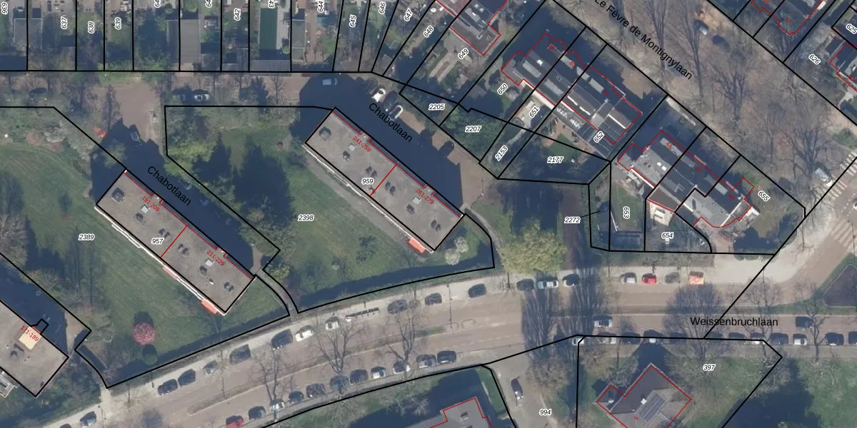 Chabotlaan 277 is gelegen op kadastraal perceel HLG03D959. Deze kadastrale aanduiding is uniek en wordt gebruikt door het Kadaster om eigendomsrechten en andere zakelijke rechten vast te leggen. Het perceel maakt onderdeel uit van de kadastrale gemeente Hillegersberg.