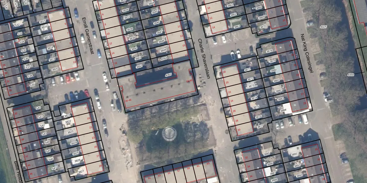Het perceel waarop Charlie Shaverslaan 39 staat heeft een oppervlakte van 827 m². Dit is een groot perceel. De perceeloppervlakte wordt geregistreerd door het Kadaster. Gedetailleerde informatie over de maten van dit perceel kunt u vinden in het rapport Kadastrale kaart met maatvoering van Charlie Shaverslaan 39.