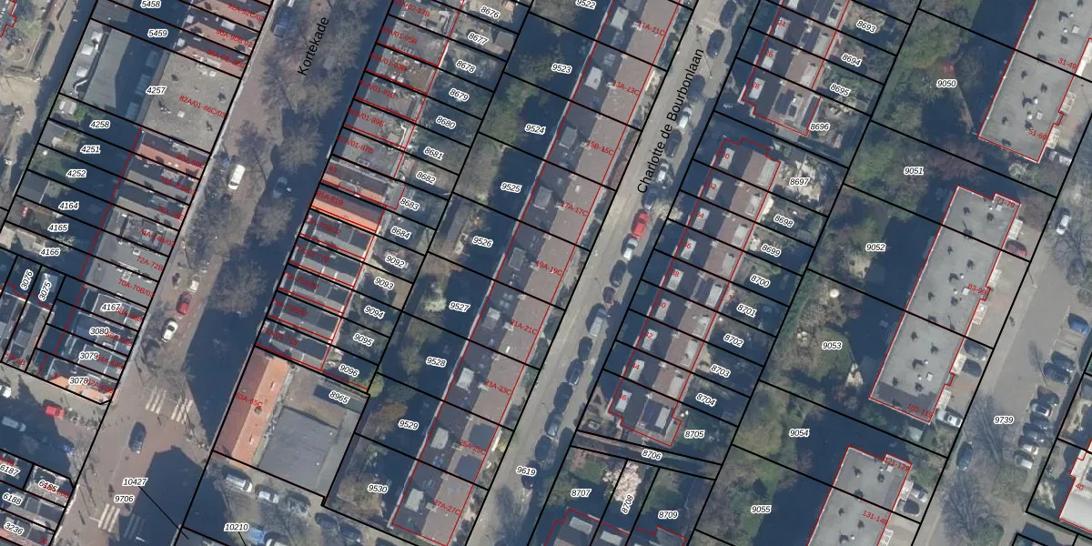 Charlotte de Bourbonlaan 19-B is gelegen op kadastraal perceel KLG00D9526. Deze kadastrale aanduiding is uniek en wordt gebruikt door het Kadaster om eigendomsrechten en andere zakelijke rechten vast te leggen. Het perceel maakt onderdeel uit van de kadastrale gemeente Kralingen.