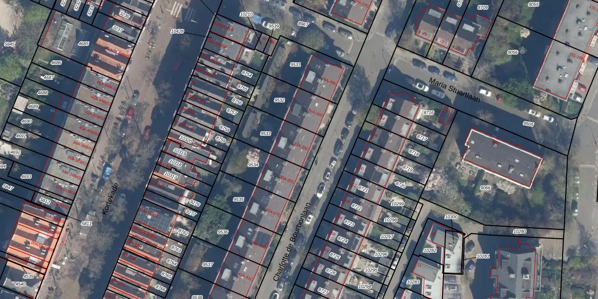 Charlotte de Bourbonlaan 33-B is gelegen op kadastraal perceel KLG00D9533. Deze kadastrale aanduiding is uniek en wordt gebruikt door het Kadaster om eigendomsrechten en andere zakelijke rechten vast te leggen. Het perceel maakt onderdeel uit van de kadastrale gemeente Kralingen.