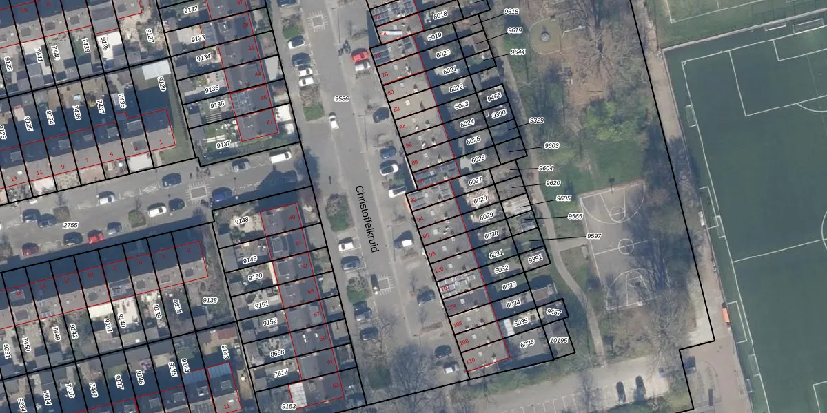 Het perceel waarop Christoffelkruid 92 staat heeft een oppervlakte van 98 m². Dit is een klein perceel. De perceeloppervlakte wordt geregistreerd door het Kadaster. Gedetailleerde informatie over de maten van dit perceel kunt u vinden in het rapport Kadastrale kaart met maatvoering van Christoffelkruid 92.