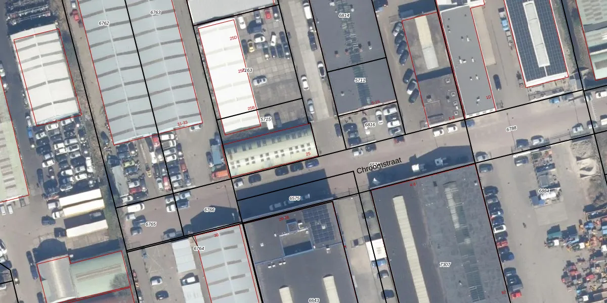 Chroomstraat 25 is gelegen op kadastraal perceel HLG03C5715. Deze kadastrale aanduiding is uniek en wordt gebruikt door het Kadaster om eigendomsrechten en andere zakelijke rechten vast te leggen. Het perceel maakt onderdeel uit van de kadastrale gemeente Hillegersberg.