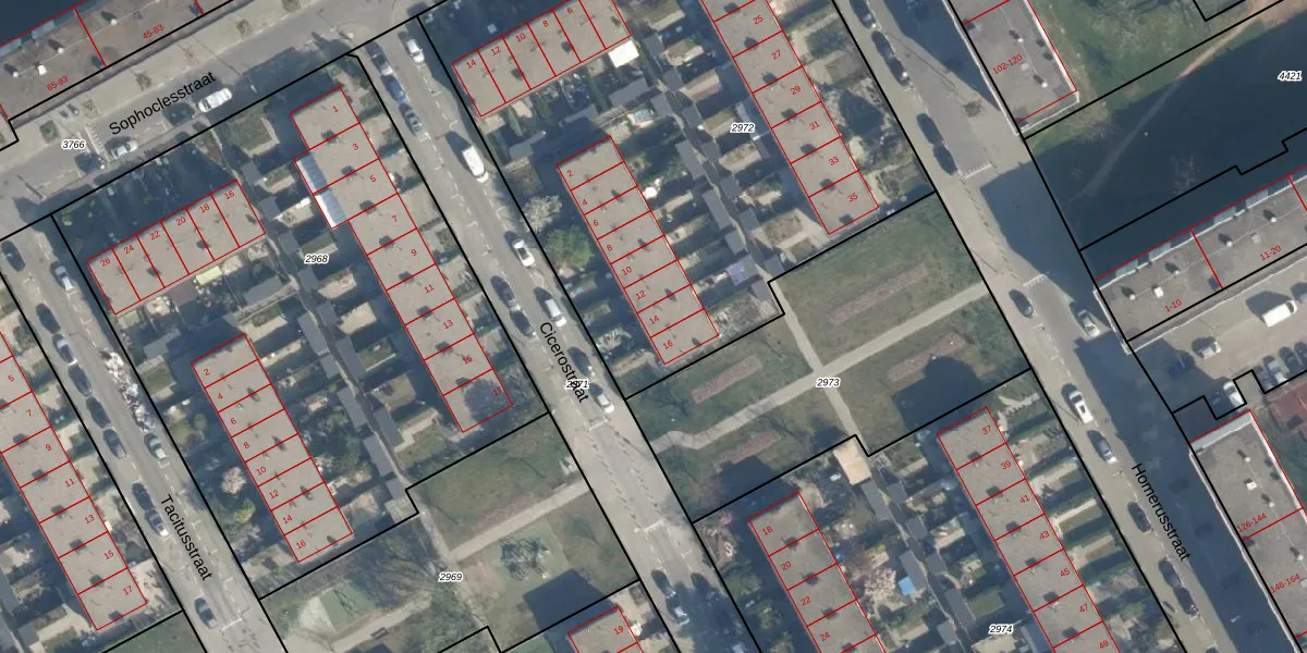 Het perceel waarop Cicerostraat 14 staat heeft een oppervlakte van 3677 m². Dit is een zeer groot perceel. De perceeloppervlakte wordt geregistreerd door het Kadaster. Gedetailleerde informatie over de maten van dit perceel kunt u vinden in het rapport Kadastrale kaart met maatvoering van Cicerostraat 14.
