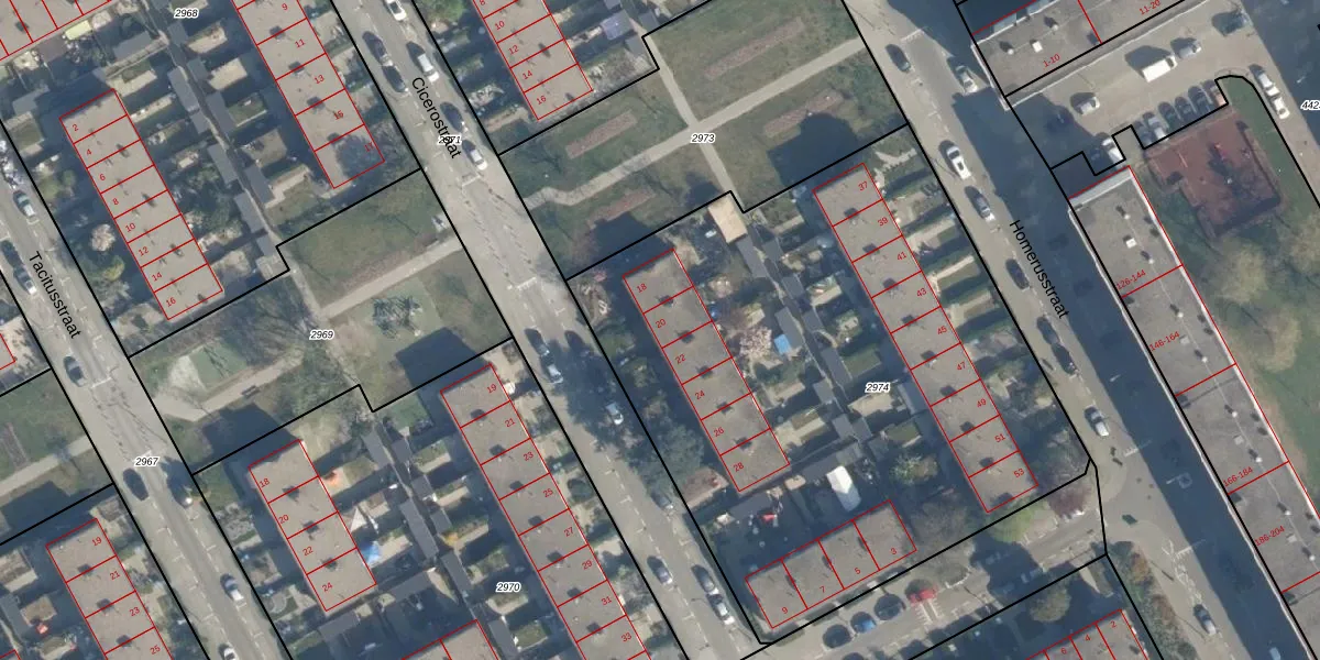Het perceel waarop Cicerostraat 20 staat heeft een oppervlakte van 3513 m². Dit is een zeer groot perceel. De perceeloppervlakte wordt geregistreerd door het Kadaster. Gedetailleerde informatie over de maten van dit perceel kunt u vinden in het rapport Kadastrale kaart met maatvoering van Cicerostraat 20.