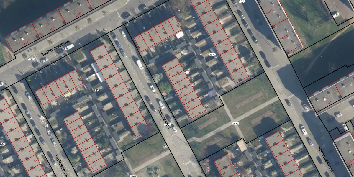Het perceel waarop Cicerostraat 8 staat heeft een oppervlakte van 3677 m². Dit is een zeer groot perceel. De perceeloppervlakte wordt geregistreerd door het Kadaster. Gedetailleerde informatie over de maten van dit perceel kunt u vinden in het rapport Kadastrale kaart met maatvoering van Cicerostraat 8.