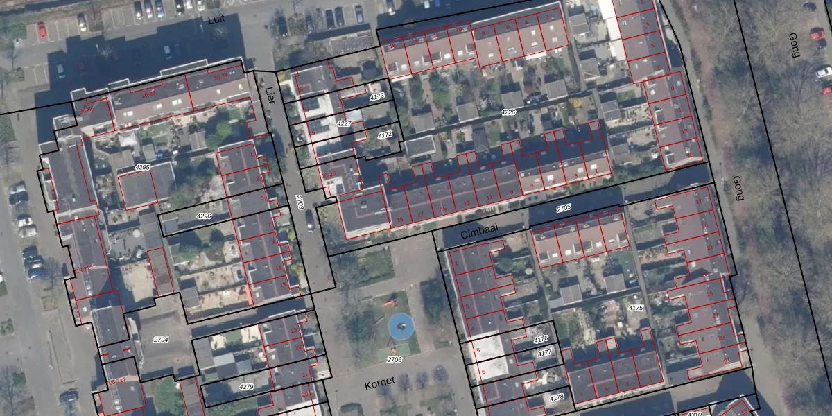 Cimbaal 17 is gelegen op kadastraal perceel RTD13BA4226. Deze kadastrale aanduiding is uniek en wordt gebruikt door het Kadaster om eigendomsrechten en andere zakelijke rechten vast te leggen. Het perceel maakt onderdeel uit van de kadastrale gemeente Rotterdam.