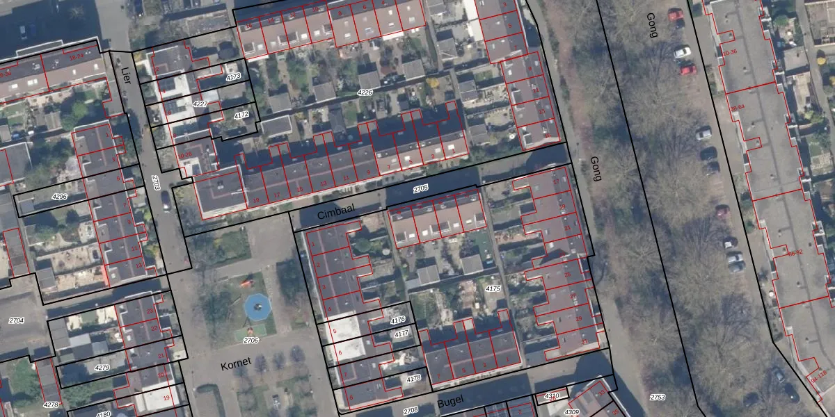 Cimbaal 6 is gelegen op kadastraal perceel RTD13BA4175. Deze kadastrale aanduiding is uniek en wordt gebruikt door het Kadaster om eigendomsrechten en andere zakelijke rechten vast te leggen. Het perceel maakt onderdeel uit van de kadastrale gemeente Rotterdam.