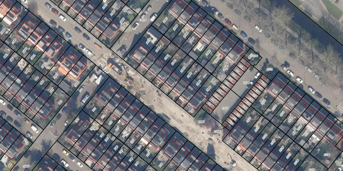 Gebruik de zoekbalk of klik op een perceel voor informatie over de adressen binnen dit perceel.