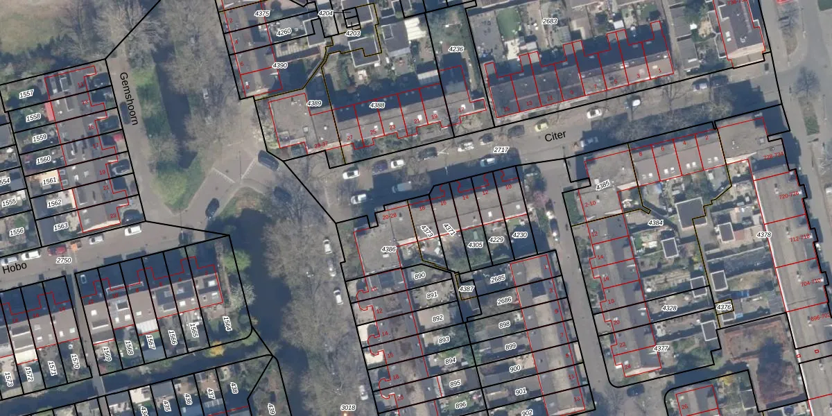 Het perceel waarop Citer 18 staat heeft een oppervlakte van 91 m². Dit is een klein perceel. De perceeloppervlakte wordt geregistreerd door het Kadaster. Gedetailleerde informatie over de maten van dit perceel kunt u vinden in het rapport Kadastrale kaart met maatvoering van Citer 18.