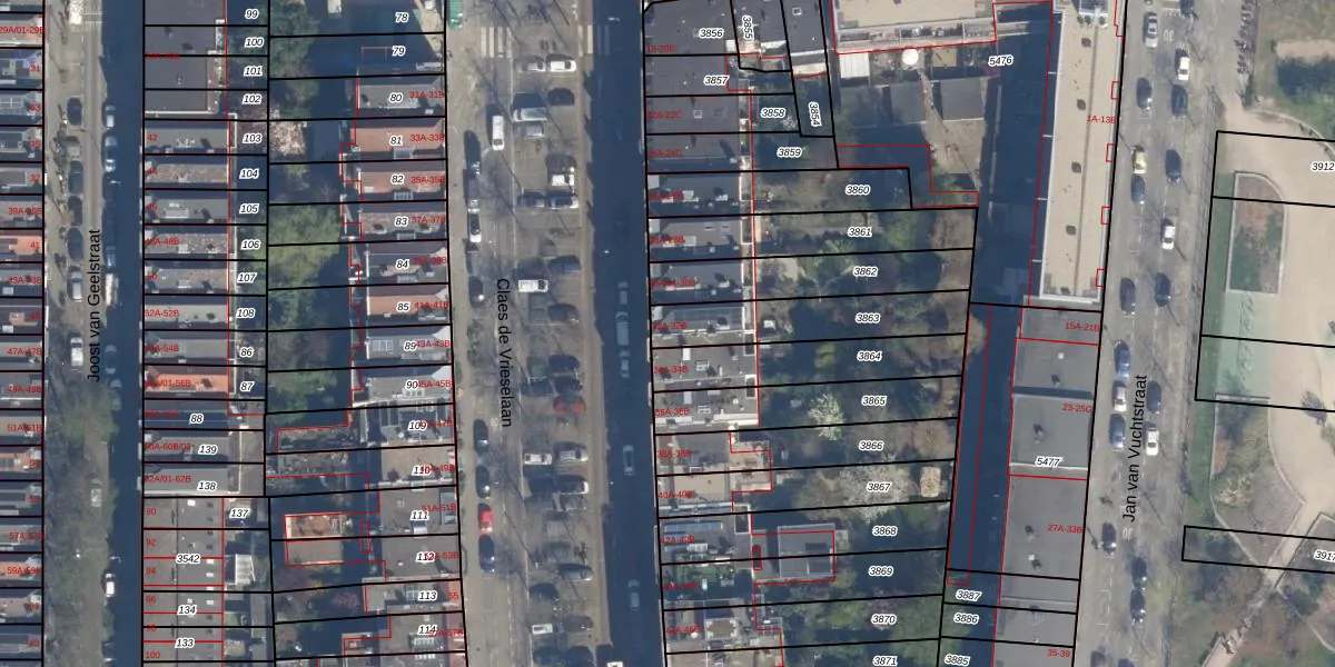 Claes de Vrieselaan 32-B is gelegen op kadastraal perceel DHV00C3863. Deze kadastrale aanduiding is uniek en wordt gebruikt door het Kadaster om eigendomsrechten en andere zakelijke rechten vast te leggen. Het perceel maakt onderdeel uit van de kadastrale gemeente Delfshaven.