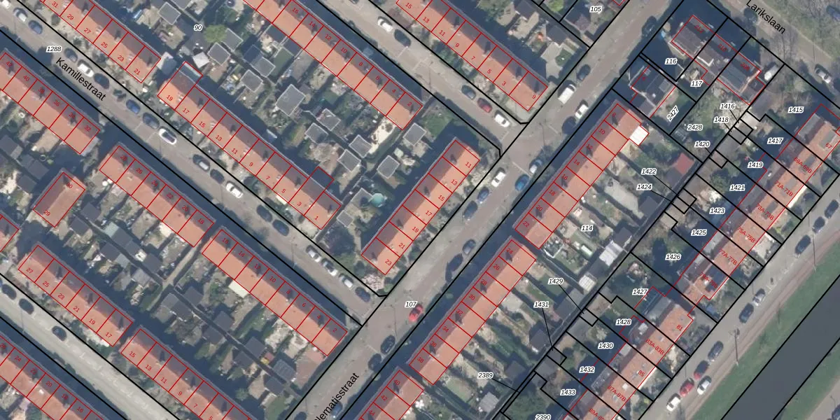 Het adres is gelegen op perceel 90 in de sectie C en de kadastrale gemeente Schiebroek. De kadastrale aanduiding is aldus SBK01-C-90. De gemiddelde perceeloppervlakte in de kadastrale gemeente Schiebroek is 1442,11 m². Dit perceel is met zijn 6746 m² dus groter dan gemiddeld. De grootste perceeloppervlakte in de kadastrale gemeente is 36,7 ha. De kleinste oppervlakte bedraagt 0 m². Op het perceel liggen in totaal 54 adressen. In de Basisregistratie Kadaster (BRK) werden de grenzen van het perceel geregistreerd op 14-11-2002.
