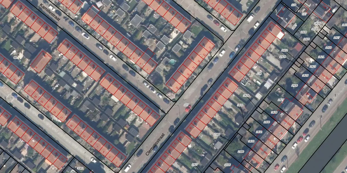 Clematisstraat 23 is gelegen op kadastraal perceel SBK01C90. Deze kadastrale aanduiding is uniek en wordt gebruikt door het Kadaster om eigendomsrechten en andere zakelijke rechten vast te leggen. Het perceel maakt onderdeel uit van de kadastrale gemeente Schiebroek.