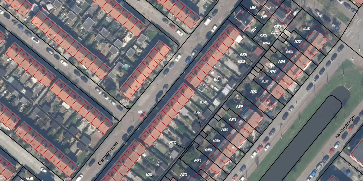 Clematisstraat 24 is gelegen op kadastraal perceel SBK01C114. Deze kadastrale aanduiding is uniek en wordt gebruikt door het Kadaster om eigendomsrechten en andere zakelijke rechten vast te leggen. Het perceel maakt onderdeel uit van de kadastrale gemeente Schiebroek.