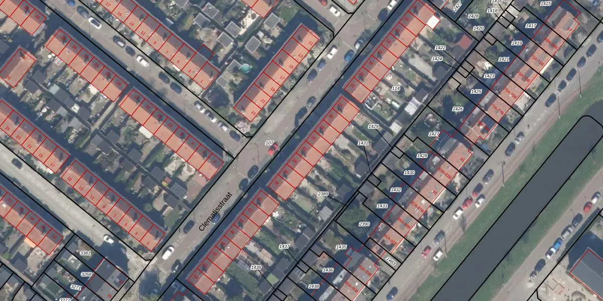Clematisstraat 32 is gelegen op kadastraal perceel SBK01C114. Deze kadastrale aanduiding is uniek en wordt gebruikt door het Kadaster om eigendomsrechten en andere zakelijke rechten vast te leggen. Het perceel maakt onderdeel uit van de kadastrale gemeente Schiebroek.
