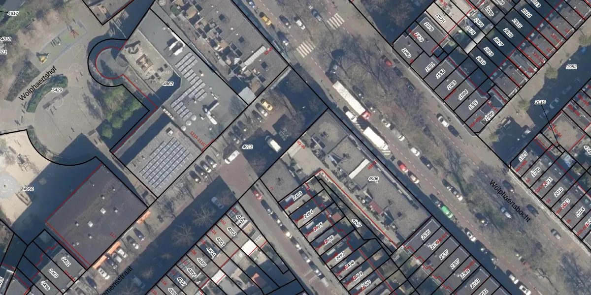 Het adres is gelegen op perceel 4906 in de sectie E en de kadastrale gemeente Charlois. De kadastrale aanduiding is aldus CLS00-E-4906. Het perceel is kleiner dan gemiddeld in Charlois. Het perceel is 1110 m² groot, terwijl het gemiddelde ligt op 1147,69 m². Het grootste perceel in de kadastrale gemeente is 1,09 km². Het kleinste perceel heeft een oppervlakte van 0 m². Op het perceel zijn 25 adressen aanwezig. In de Basisregistratie Kadaster (BRK) werden de grenzen van het perceel geregistreerd op 16-09-2009.