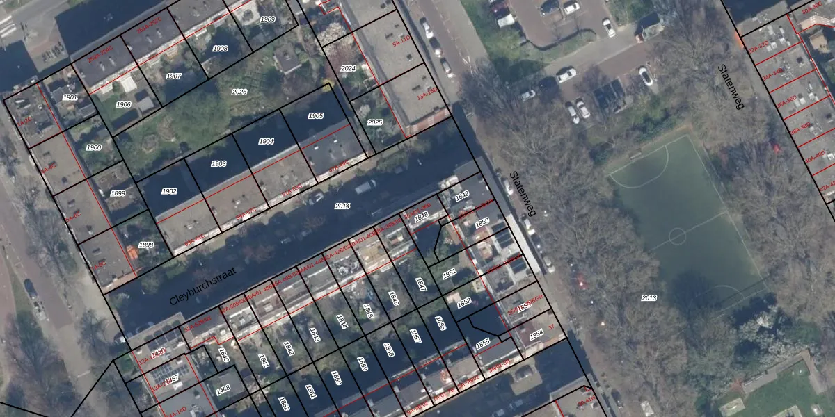 Cleyburchstraat 36-A-01 is gelegen op kadastraal perceel RTD10AB1848. Deze kadastrale aanduiding is uniek en wordt gebruikt door het Kadaster om eigendomsrechten en andere zakelijke rechten vast te leggen. Het perceel maakt onderdeel uit van de kadastrale gemeente Rotterdam.