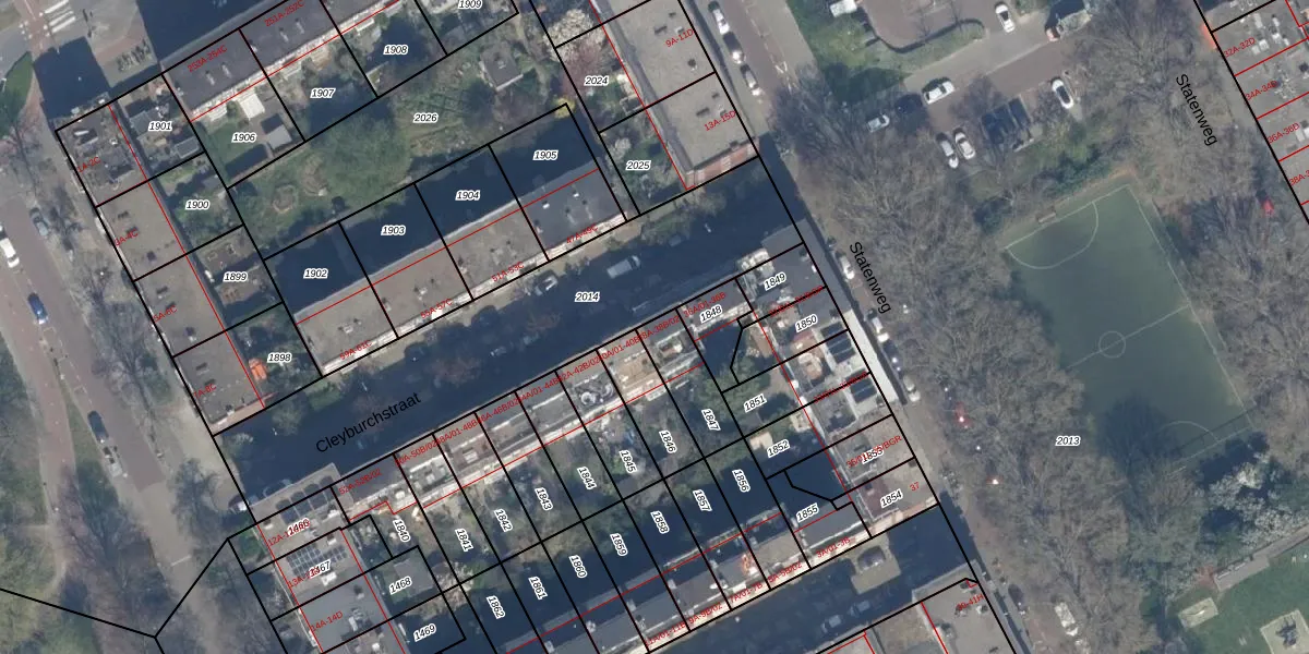 Cleyburchstraat 38-B-01 is gelegen op kadastraal perceel RTD10AB1847. Deze kadastrale aanduiding is uniek en wordt gebruikt door het Kadaster om eigendomsrechten en andere zakelijke rechten vast te leggen. Het perceel maakt onderdeel uit van de kadastrale gemeente Rotterdam.