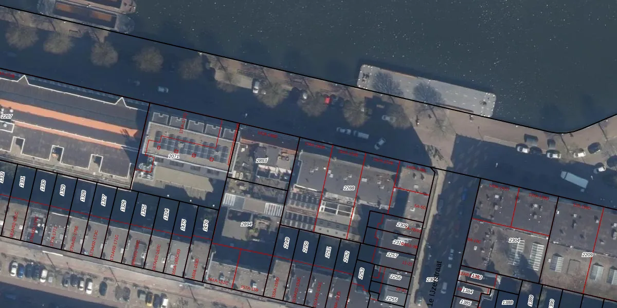 Het adres is gelegen op perceel 2288 in de sectie F en de kadastrale gemeente Delfshaven. De kadastrale aanduiding is aldus DHV00-F-2288. De oppervlakte van het perceel is 1112 m². Dat is groter dan gemiddeld in Delfshaven, waar de gemiddelde perceeloppervlakte op 628,89 m² ligt. De grootste perceeloppervlakte in de kadastrale gemeente is 22,2 ha. De kleinste oppervlakte bedraagt 0 m². Er zijn 35 adressen aanwezig op het perceel. In de Basisregistratie Kadaster (BRK) werden de grenzen van het perceel geregistreerd op 18-03-2024.