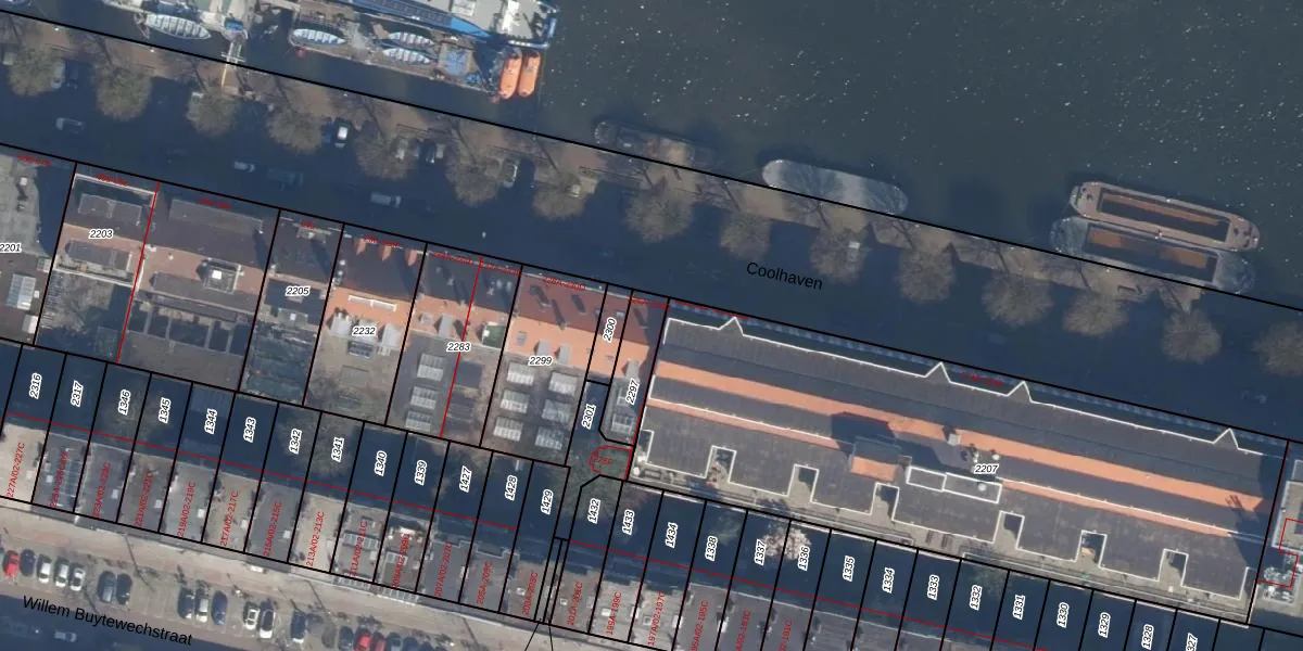 Het adres is gelegen op perceel 2297 in de sectie F en de kadastrale gemeente Delfshaven. De kadastrale aanduiding is aldus DHV00-F-2297. Het perceel is 134 m² groot. Dat is kleiner dan de gemiddelde perceeloppervlakte in Delfshaven, dat op 628,89 m² ligt. Het grootste perceel in de kadastrale gemeente is 22,2 ha. Het kleinste perceel heeft een oppervlakte van 0 m². Er zijn 4 adressen aanwezig op het perceel. In de Basisregistratie Kadaster (BRK) werden de grenzen van het perceel geregistreerd op 21-01-2009.