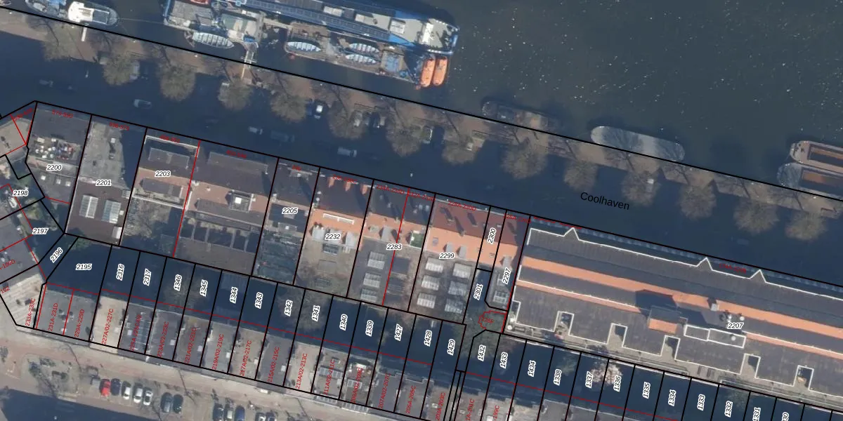 Het adres is gelegen op perceel 2283 in de sectie F en de kadastrale gemeente Delfshaven. De kadastrale aanduiding is aldus DHV00-F-2283. Het perceel is 436 m² groot. Dat is kleiner dan de gemiddelde perceeloppervlakte in Delfshaven, dat op 628,89 m² ligt. Het grootste perceel in de kadastrale gemeente is 22,2 ha. Het kleinste perceel heeft een oppervlakte van 0 m². Op het perceel zijn 8 adressen aanwezig. De laatste wijziging in het de Basisregistratie Kadaster (BRK) was op 21-01-2009.
