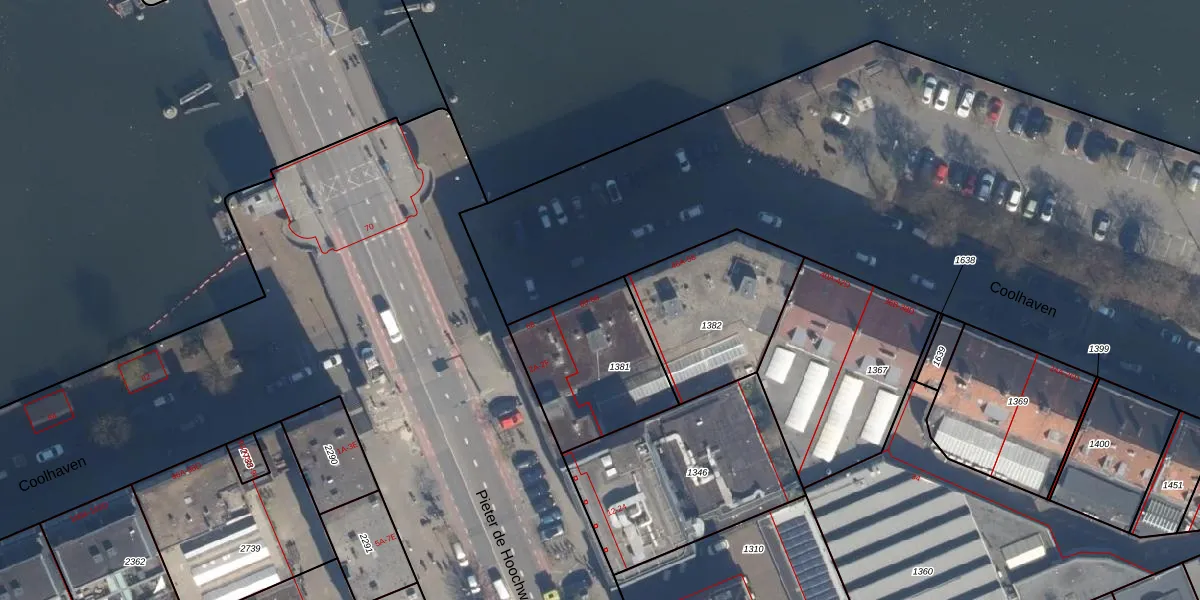 Het adres is gelegen op perceel 1381 in de sectie E en de kadastrale gemeente Delfshaven. De kadastrale aanduiding is aldus DHV00-E-1381. Het perceel is 495 m² groot. Dat is kleiner dan de gemiddelde perceeloppervlakte in Delfshaven, dat op 628,89 m² ligt. Het grootste perceel in de kadastrale gemeente is 22,2 ha. Het kleinste perceel heeft een oppervlakte van 0 m². Op het perceel liggen in totaal 21 adressen. In de Basisregistratie Kadaster (BRK) werden de grenzen van het perceel geregistreerd op 21-01-2009.