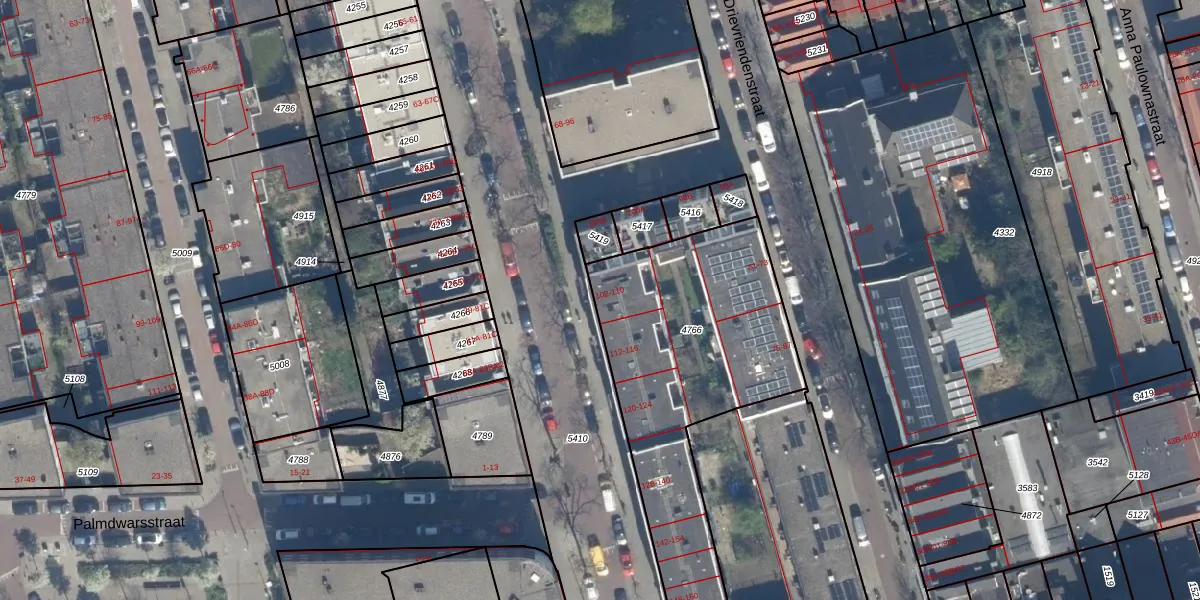 Het adres is gelegen op perceel 4766 in de sectie S en de kadastrale gemeente Rotterdam. De kadastrale aanduiding is aldus RTD06-S-4766. De oppervlakte van het perceel is 1240 m². Dat is groter dan gemiddeld in Rotterdam, waar de gemiddelde perceeloppervlakte op 692,84 m² ligt. Het grootste perceel in de kadastrale gemeente is 4,7 ha. Het kleinste perceel heeft een oppervlakte van 0 m². Op het perceel liggen in totaal 42 adressen. In de Basisregistratie Kadaster (BRK) werden de grenzen van het perceel geregistreerd op 21-09-2022.