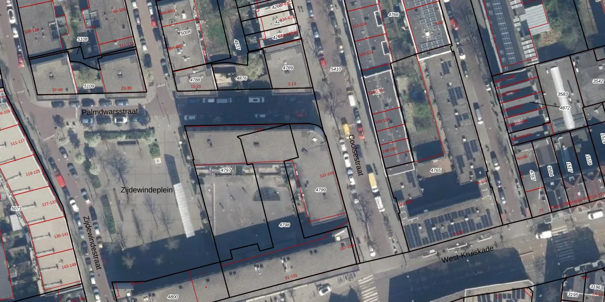 Het adres is gelegen op perceel 4799 in de sectie S en de kadastrale gemeente Rotterdam. De kadastrale aanduiding is aldus RTD06-S-4799. Het perceel is 520 m² groot. Dat is kleiner dan de gemiddelde perceeloppervlakte in Rotterdam, dat op 692,84 m² ligt. Het grootste perceel in de kadastrale gemeente is 4,7 ha. Het kleinste perceel heeft een oppervlakte van 0 m². Op het perceel zijn 13 adressen aanwezig. In de Basisregistratie Kadaster (BRK) werden de grenzen van het perceel geregistreerd op 12-03-2003.