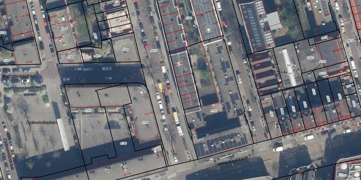 Het adres is gelegen op perceel 4766 in de sectie S en de kadastrale gemeente Rotterdam. De kadastrale aanduiding is aldus RTD06-S-4766. De oppervlakte van het perceel is 1240 m². Dat is groter dan gemiddeld in Rotterdam, waar de gemiddelde perceeloppervlakte op 692,84 m² ligt. Het grootste perceel in de kadastrale gemeente is 4,7 ha. Het kleinste perceel heeft een oppervlakte van 0 m². Op het perceel liggen in totaal 42 adressen. De huidige grenzen van het perceel zijn digitaal in de Basisregistratie Kadaster (BRK) geregistreerd op 21-09-2022.