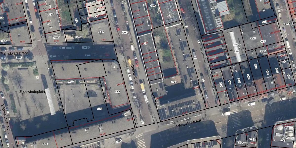 Het adres is gelegen op perceel 4766 in de sectie S en de kadastrale gemeente Rotterdam. De kadastrale aanduiding is aldus RTD06-S-4766. De oppervlakte van het perceel is 1240 m². Dat is groter dan gemiddeld in Rotterdam, waar de gemiddelde perceeloppervlakte op 692,84 m² ligt. Het grootste perceel in de kadastrale gemeente is 4,7 ha. Het kleinste perceel heeft een oppervlakte van 0 m². Er zijn 42 adressen aanwezig op het perceel. In de Basisregistratie Kadaster (BRK) werden de grenzen van het perceel geregistreerd op 21-09-2022.
