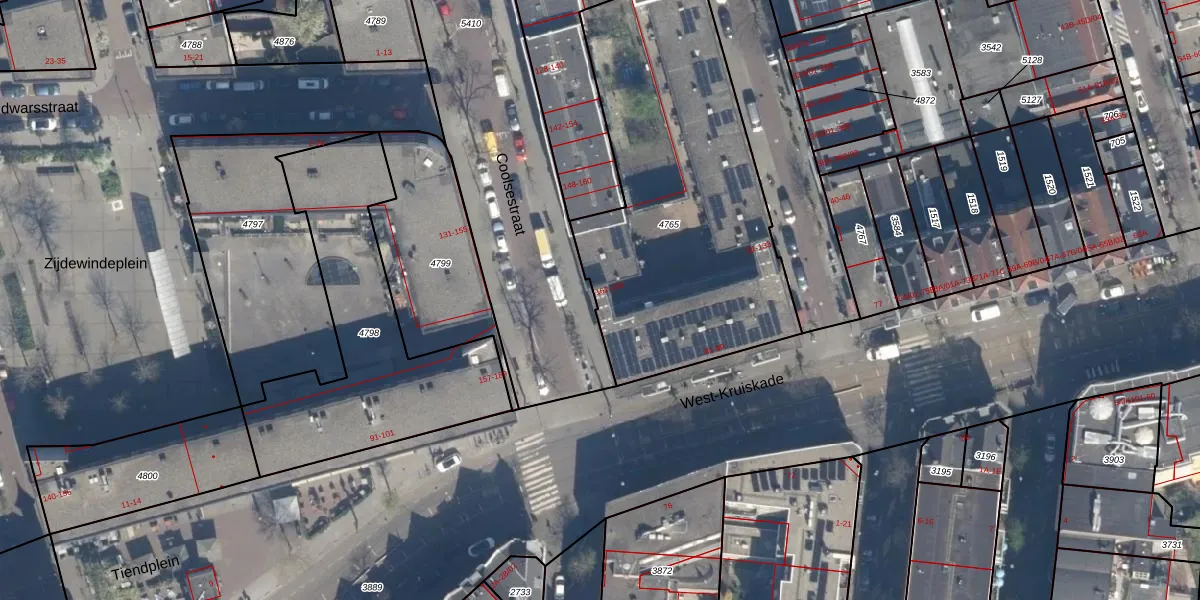 Het adres is gelegen op perceel 4765 in de sectie S en de kadastrale gemeente Rotterdam. De kadastrale aanduiding is aldus RTD06-S-4765. De oppervlakte van het perceel is 1620 m². Dat is groter dan gemiddeld in Rotterdam, waar de gemiddelde perceeloppervlakte op 692,84 m² ligt. Het grootste perceel in de kadastrale gemeente is 4,7 ha. Het kleinste perceel heeft een oppervlakte van 0 m². Op het perceel liggen in totaal 39 adressen. De laatste wijziging in het de Basisregistratie Kadaster (BRK) was op 12-03-2003.