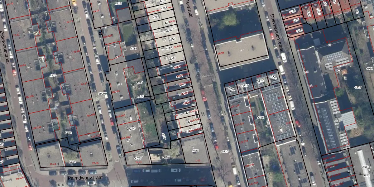 Het adres is gelegen op perceel 4264 in de sectie S en de kadastrale gemeente Rotterdam. De kadastrale aanduiding is aldus RTD06-S-4264. Het perceel is 111 m² groot. Dat is kleiner dan de gemiddelde perceeloppervlakte in Rotterdam, dat op 692,84 m² ligt. Het grootste perceel in de kadastrale gemeente is 4,7 ha. Het kleinste perceel heeft een oppervlakte van 0 m². Op het perceel liggen in totaal 4 adressen. In de Basisregistratie Kadaster (BRK) werden de grenzen van het perceel geregistreerd op 12-03-2003.