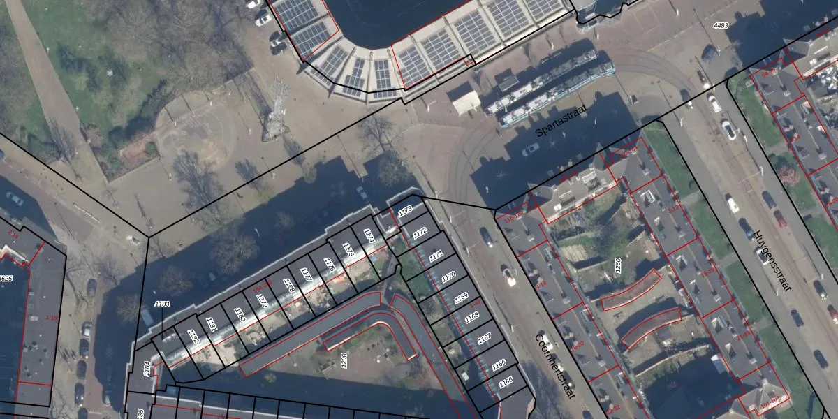 Het perceel waarop Coornhertstraat 1 staat heeft een oppervlakte van 70 m². Dit is een klein perceel. De perceeloppervlakte wordt geregistreerd door het Kadaster. Gedetailleerde informatie over de maten van dit perceel kunt u vinden in het rapport Kadastrale kaart met maatvoering van Coornhertstraat 1.