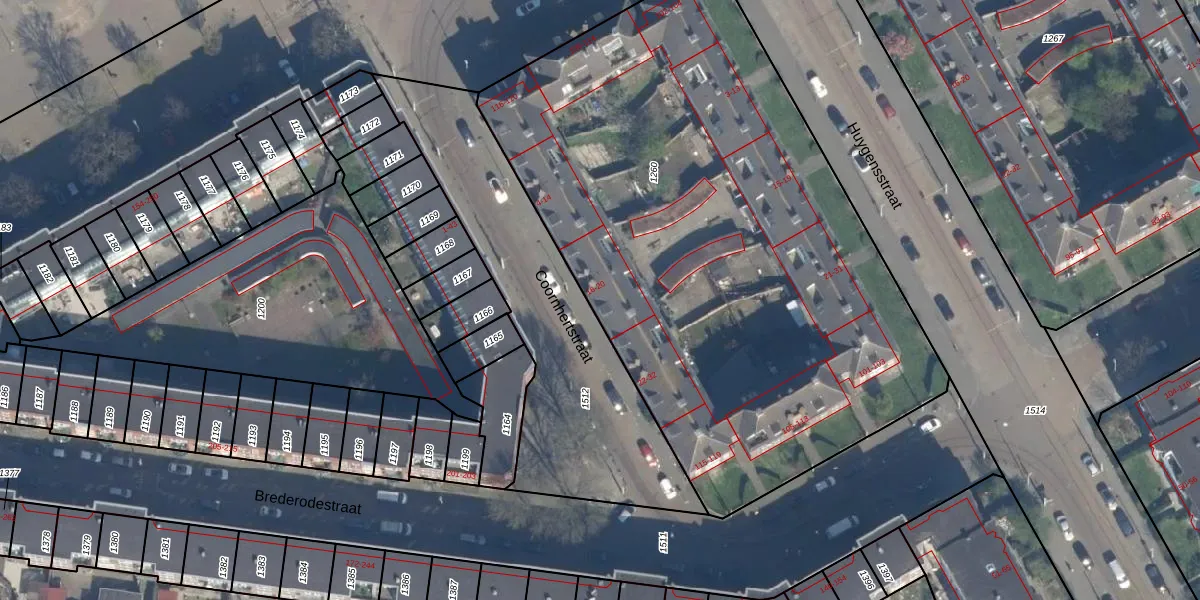 Het perceel waarop Coornhertstraat 18 staat heeft een oppervlakte van 3740 m². Dit is een zeer groot perceel. De perceeloppervlakte wordt geregistreerd door het Kadaster. Gedetailleerde informatie over de maten van dit perceel kunt u vinden in het rapport Kadastrale kaart met maatvoering van Coornhertstraat 18.