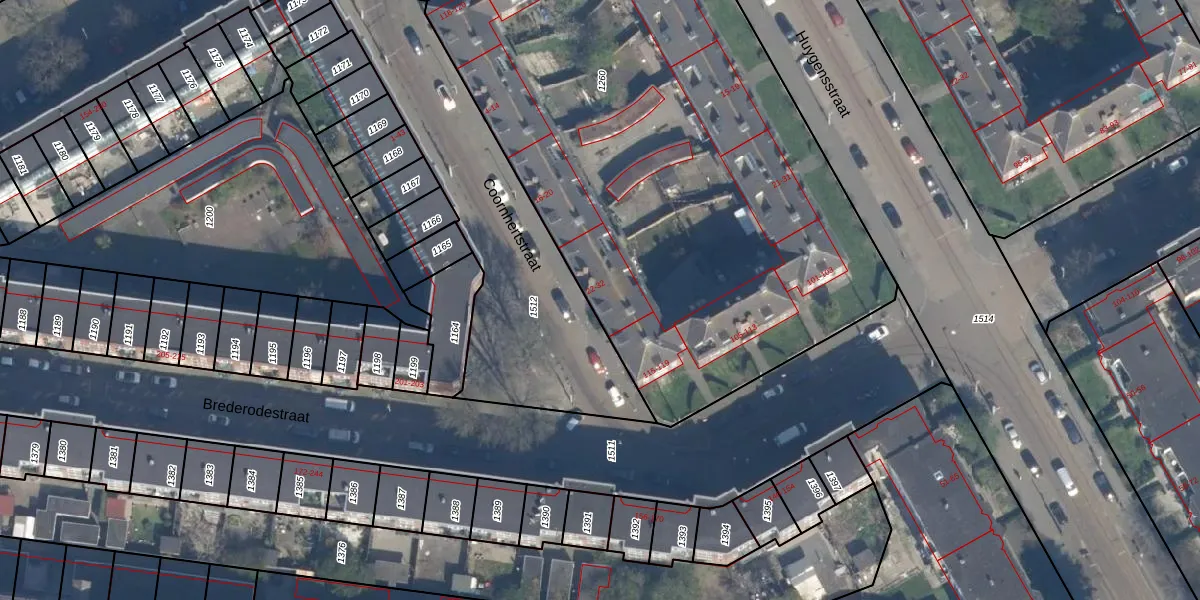 Het perceel waarop Coornhertstraat 22 staat heeft een oppervlakte van 3740 m². Dit is een zeer groot perceel. De perceeloppervlakte wordt geregistreerd door het Kadaster. Gedetailleerde informatie over de maten van dit perceel kunt u vinden in het rapport Kadastrale kaart met maatvoering van Coornhertstraat 22.