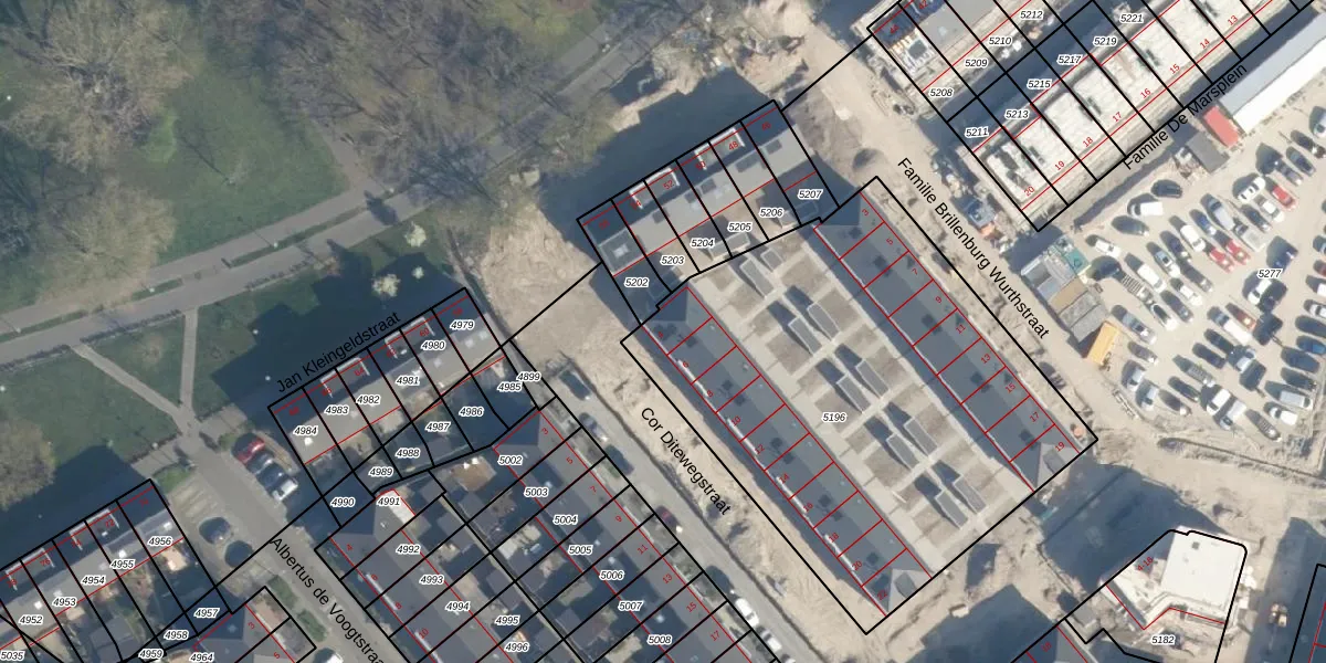 Het perceel waarop Cor Ditewegstraat 4 staat heeft een oppervlakte van 2528 m². Dit is een zeer groot perceel. De perceeloppervlakte wordt geregistreerd door het Kadaster. Gedetailleerde informatie over de maten van dit perceel kunt u vinden in het rapport Kadastrale kaart met maatvoering van Cor Ditewegstraat 4.