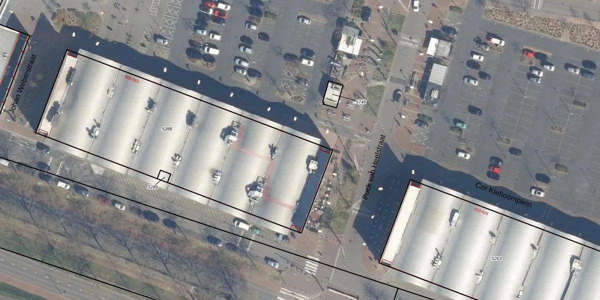 Cor Kieboomplein 511 is gelegen op kadastraal perceel RTD05V5288. Deze kadastrale aanduiding is uniek en wordt gebruikt door het Kadaster om eigendomsrechten en andere zakelijke rechten vast te leggen. Het perceel maakt onderdeel uit van de kadastrale gemeente Rotterdam.