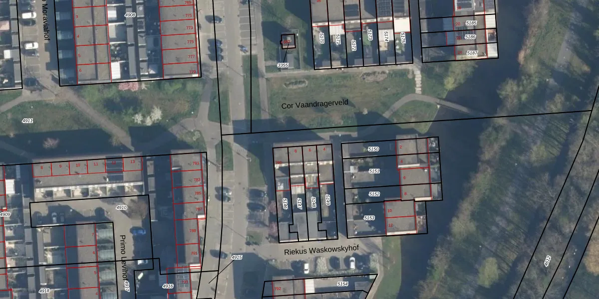 Gebruik de zoekbalk of klik op een perceel voor informatie over de adressen binnen dit perceel.