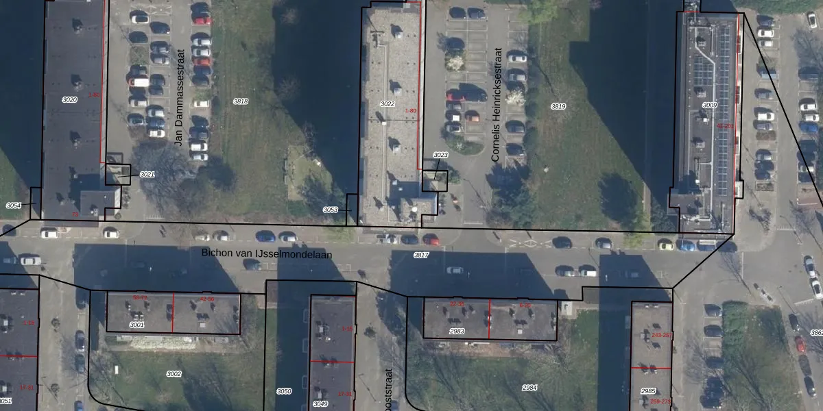 Het adres is gelegen op perceel 3022 in de sectie D en de kadastrale gemeente IJsselmonde. De kadastrale aanduiding is aldus ISM01-D-3022. De oppervlakte van het perceel is 890 m². Dat is groter dan gemiddeld in IJsselmonde, waar de gemiddelde perceeloppervlakte op 871,86 m² ligt. Het grootste perceel in de kadastrale gemeente is 46,2 ha. Het kleinste perceel heeft een oppervlakte van 0 m². Op het perceel liggen in totaal 80 adressen. De laatste wijziging in het de Basisregistratie Kadaster (BRK) was op 19-03-2007.